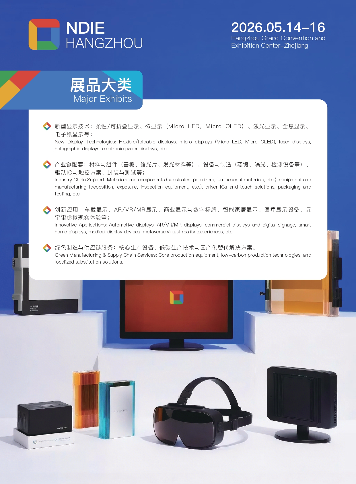 请立即预定“2026杭州新型显示展”展位,越早预留位置越佳,争取最大曝光率,领先竞争对手,开拓无限商机。